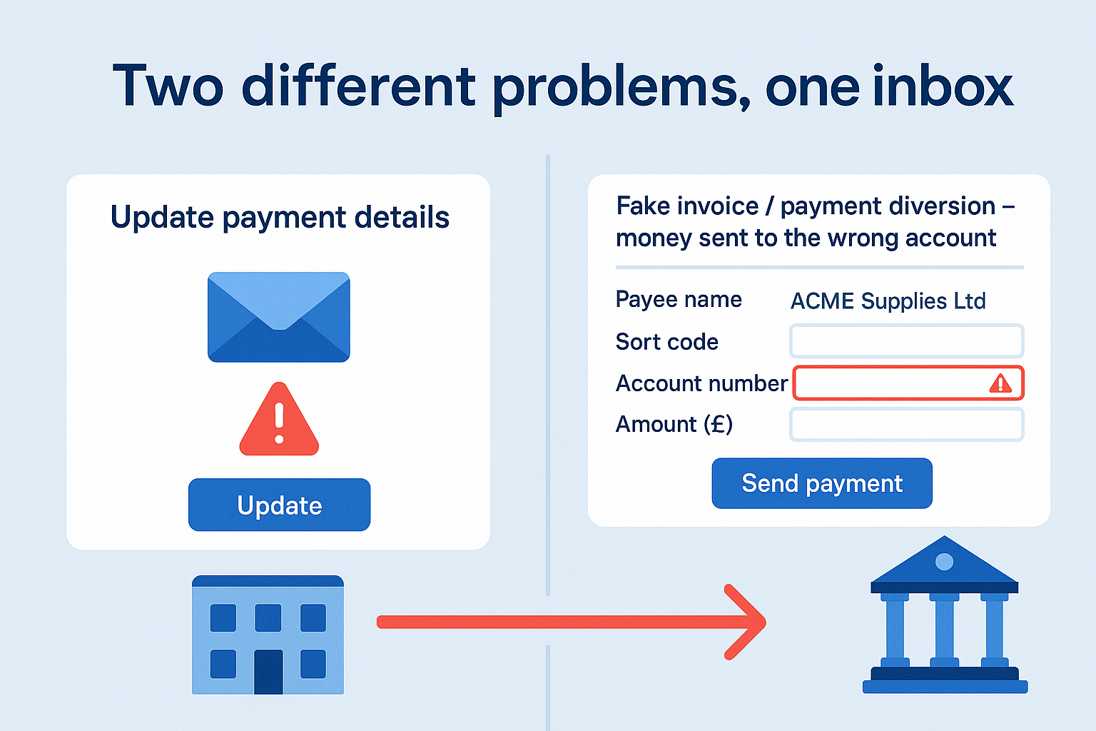 | Who’s at risk? | Your business and your customers/suppliers | Mainly whoever sent the money (often your business) |